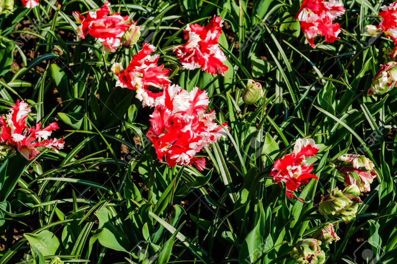 Uncategorized Red And White Parrot Tulips Like huge flaming power puffs in bright red and white its easy to see how this new hybrid got its nickname the fireball tulip